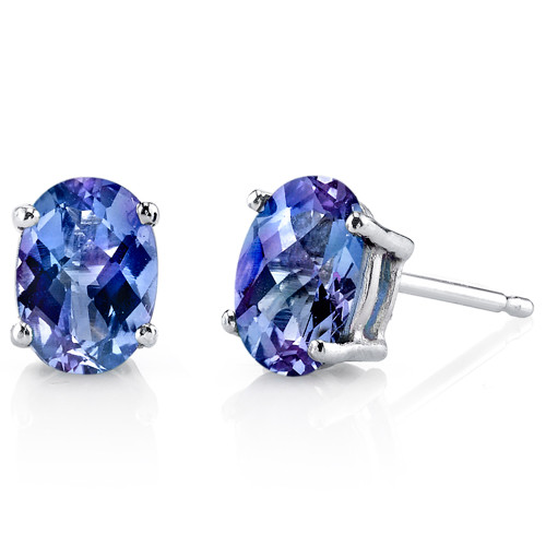 Gemstones: 2 pieces Lab Alexandrite, Oval Cut, 7 x 5 mm, 1.92 carats, Color changes hue depending on the light around it- from teal Green to Indigo to Purple to Pink, with Brilliant Sparkle. Earrings: 0.86 grams pure 14k White Gold with 14k stamp. Earrings feature exceptional Design, Craftsmanship and finishing. Perfect gift for Mothers Day, Birthdays, Valentines Day, Graduation, Christmas or just about any other occasion. Money Back Guarantee. Includes a Signature Gift Box. Style E18622