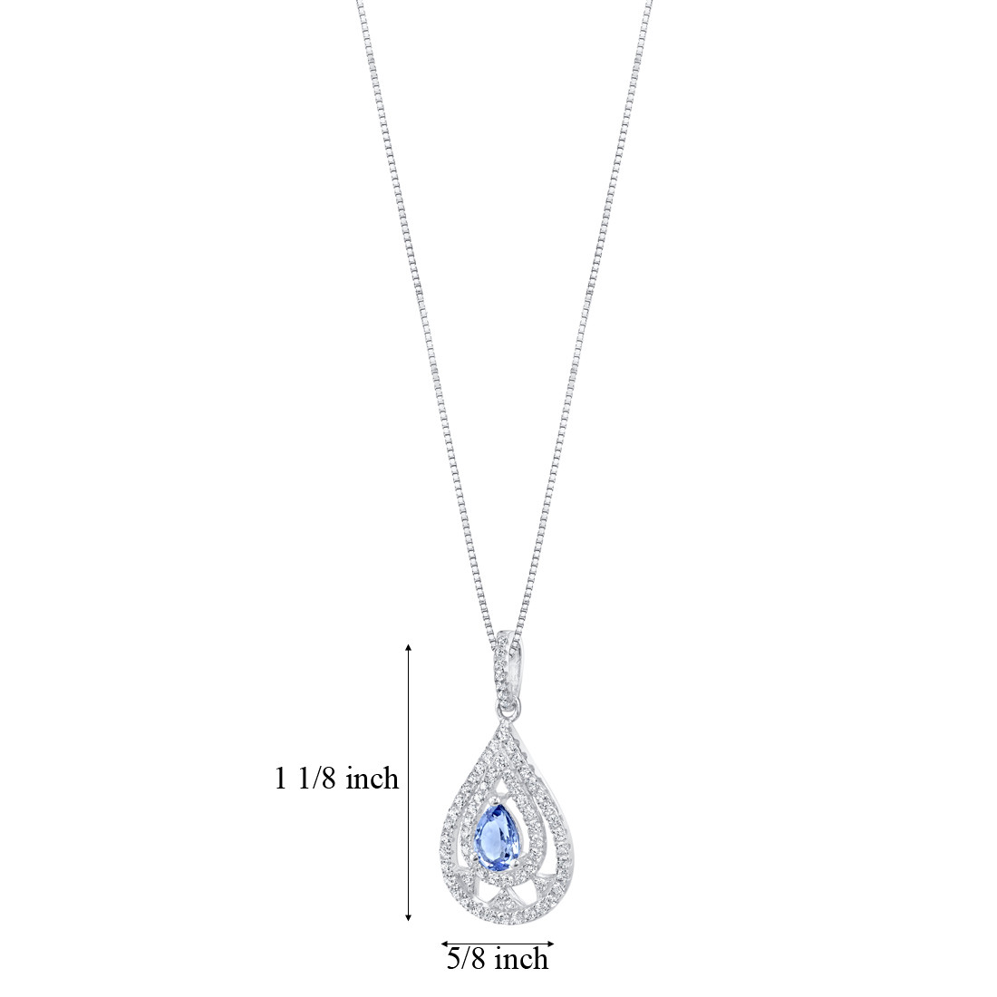 Showcase your amazing style with the perfect amount of color from a violet simulated tanzanite gemstone pendant necklace. Its pear-shaped center is surrounded by two matching cubic zirconia-laden halos embellished with lovely detailing. Hand-cut facets highlight the beauty of the stone, making this accessory extra special. Attractively boxed for easy gift giving.