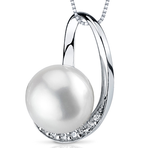 Pearl: 9.5mm Freshwater White Pearl, Round Button Shape with High Luster. Side Stones: 8 pieces Super Sparkling Machine Cut White Cubic Zirconia. Pendant: 1.8 grams pure Sterling Silver with Rhodium Finish and .925 Stamp. Perfect gift for Mothers Day, Birthdays, Valentines Day, Graduation, Christmas or just about any other occasion. Money Back Guarantee. Includes an 18 inch Sterling Silver Box chain and Signature Gift Box. Style SP10886